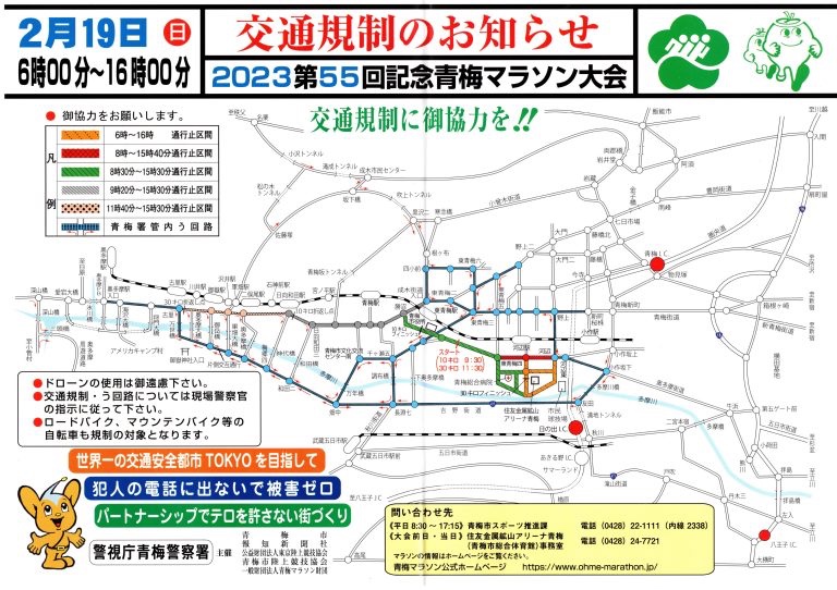 明日2/19(日)は青梅マラソン大会残り為、交通規制があります‼️