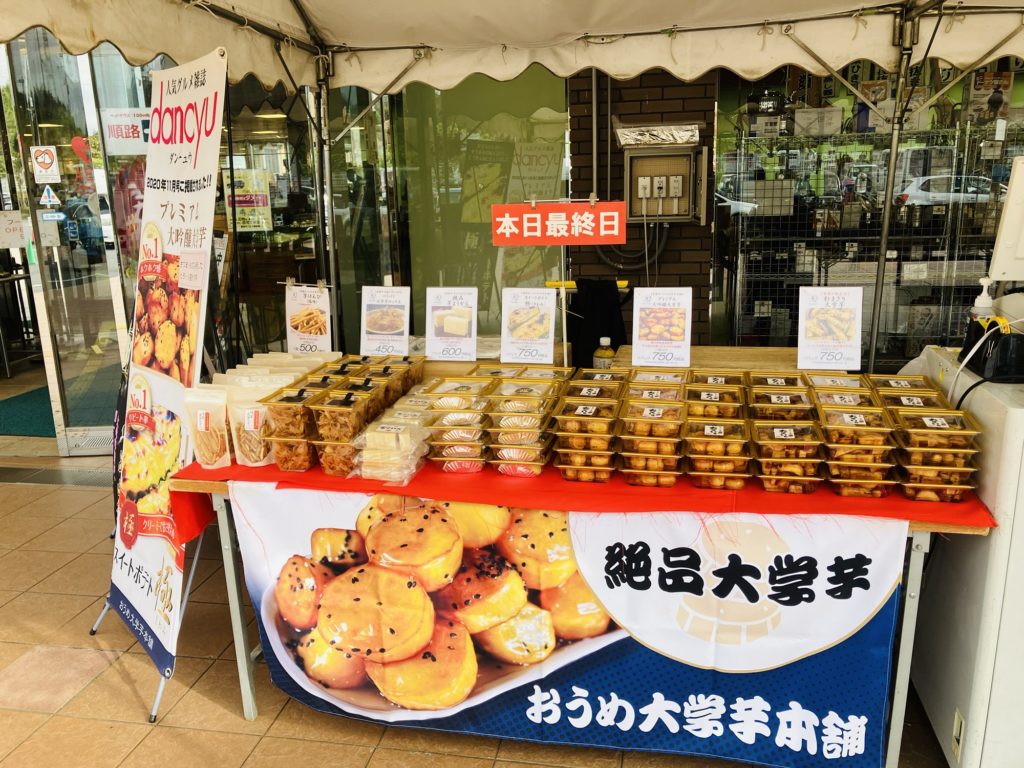 今日のラインナップは、プレミアム大吟醸大学芋、紅まさり大学芋、パリパリ大学芋チップス、スイートポテト極、芋けんぴ塩味、芋ようかんです🍠