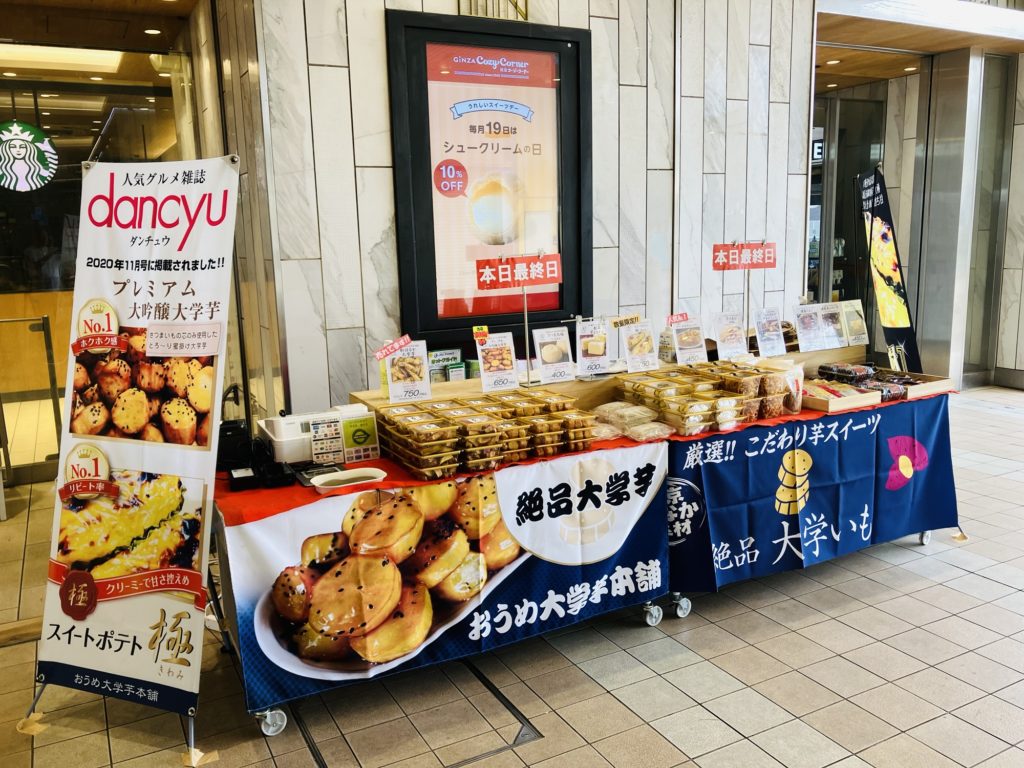 今日のラインナップは、プレミアム大吟醸大学芋、紅はるか大学芋、パリパリ大学芋チップス、スイートポテト極、芋けんぴ塩味、焼き干し芋、さつま大福、芋ようかん、燻製チーズ&たまごです🍠