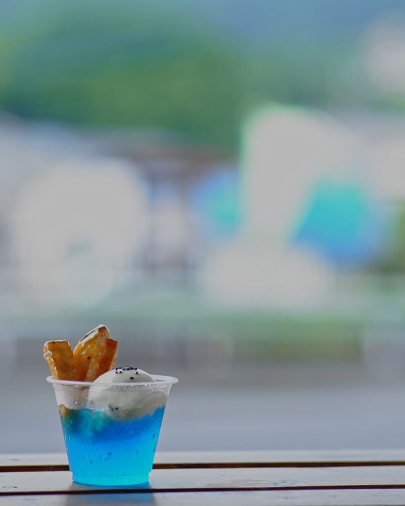 世界初?禁断のブルー蜜が大学芋&バニラアイス&ブルーゼリーによく合う✨