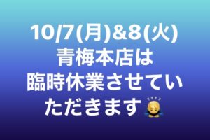 10/7(月)&8(火)青梅本店は臨時休業します♪