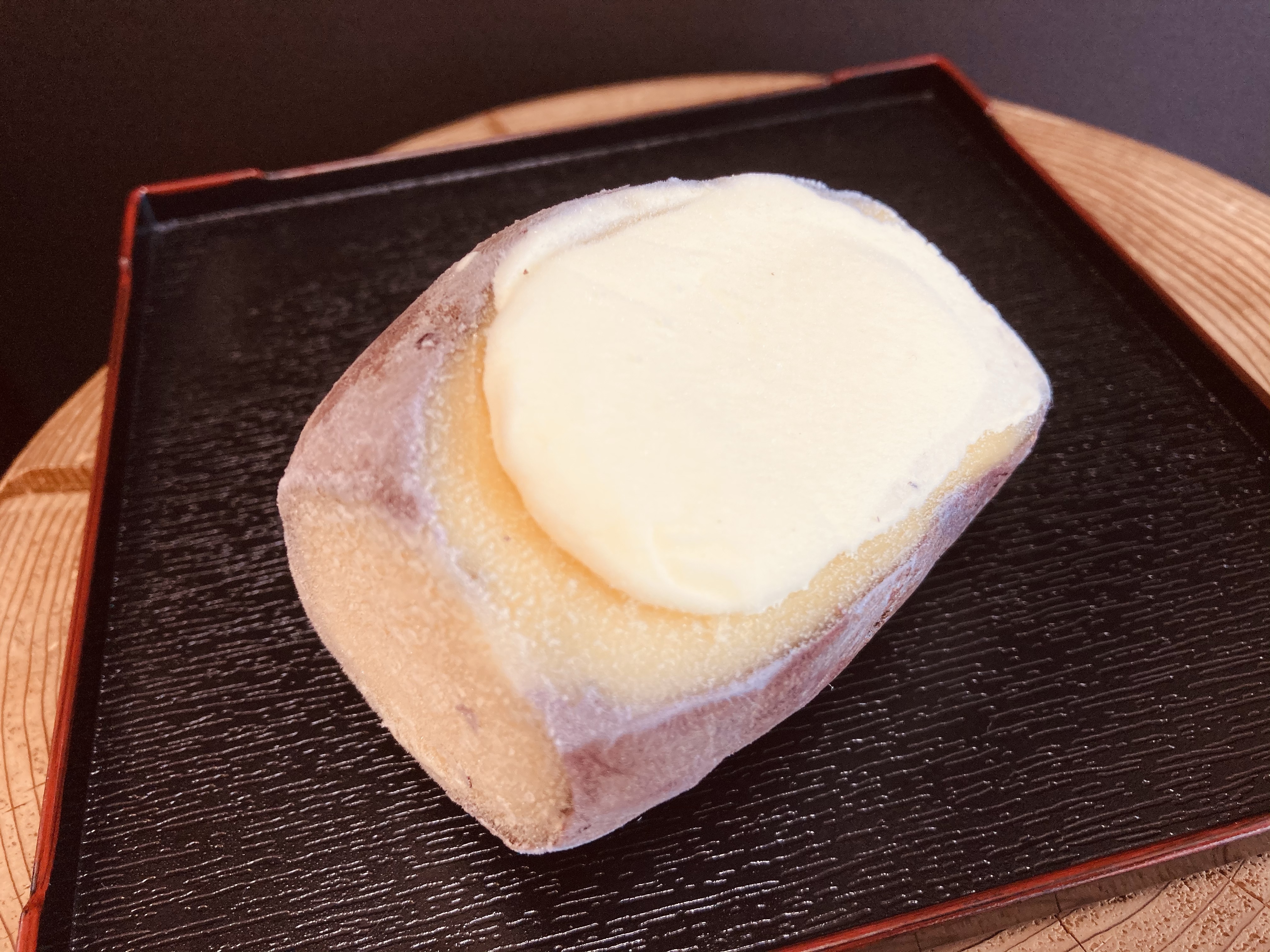 さつまいもを半分くり抜きまして、バニラアイスを埋め込んであります✨
