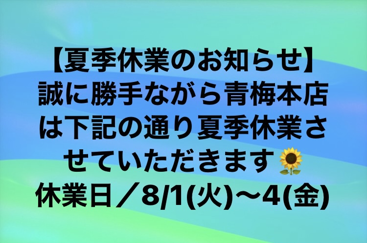 この辺りで青梅本店は夏季休業させていただきたいと思います🌻