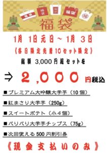 1/1元日から3日までの三が日、恒例の福袋を限定販売します💡