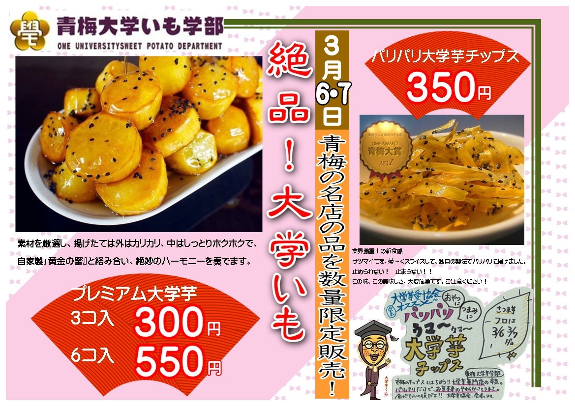 初日の明日3/6(土)は、大学芋他芋菓子を持って参戦します💡