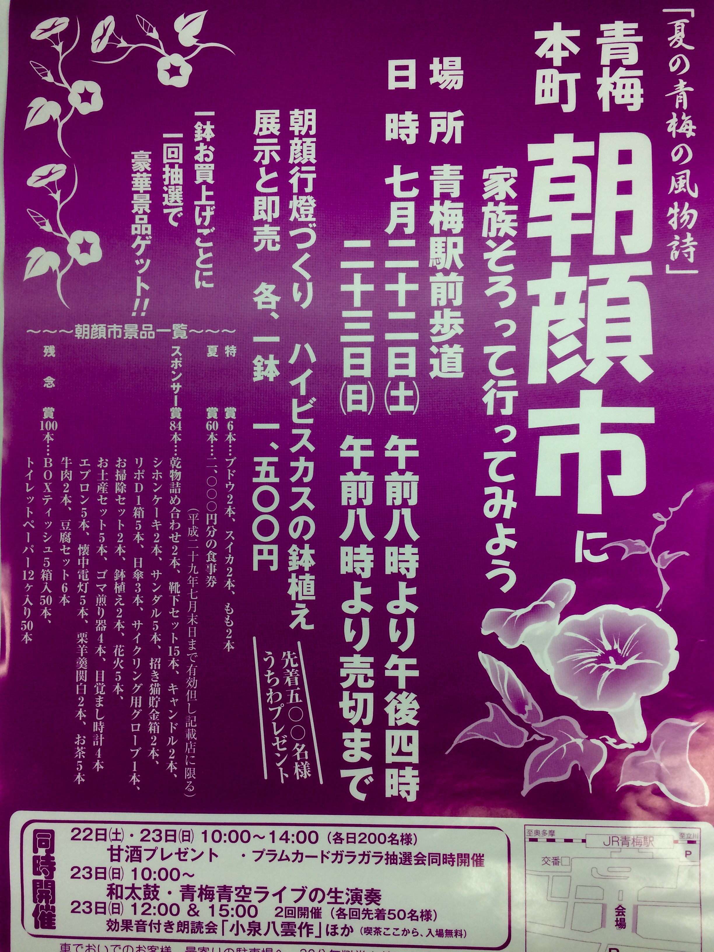 7/22(土)&23(日)は、夏の青梅の風物詩『朝顔市』に出店します✨