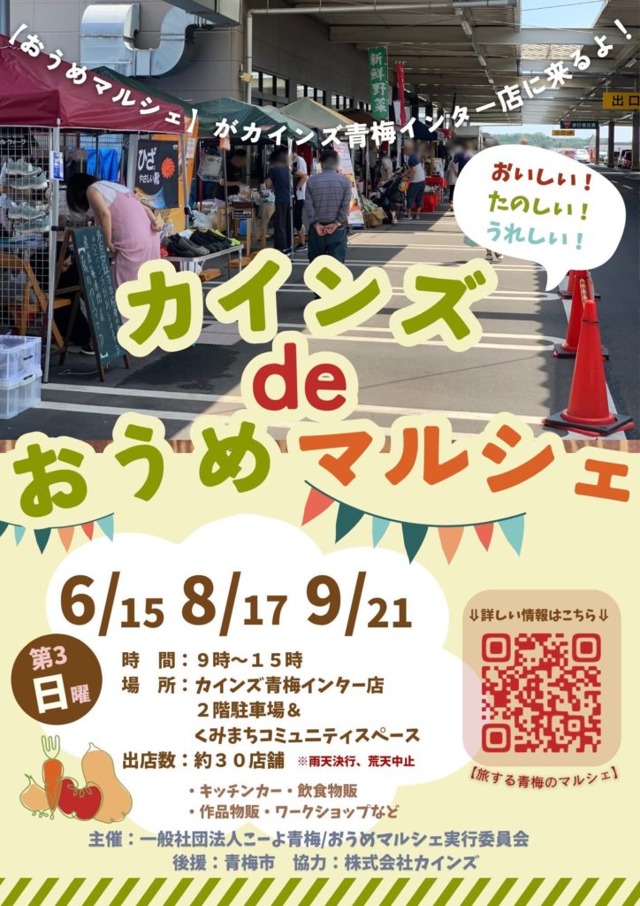 8/17(日)カインズdeおうめマルシェに出店します♪