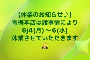 また8/7(木)から週末まで通常営業させていただきますので、よろしくお願いいたします💡