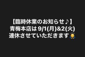 また9/3(水)から週末まで通常営業させていただきますので、よろしくお願いいたします💡